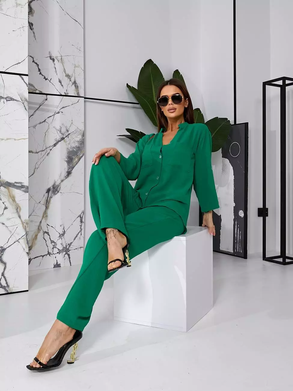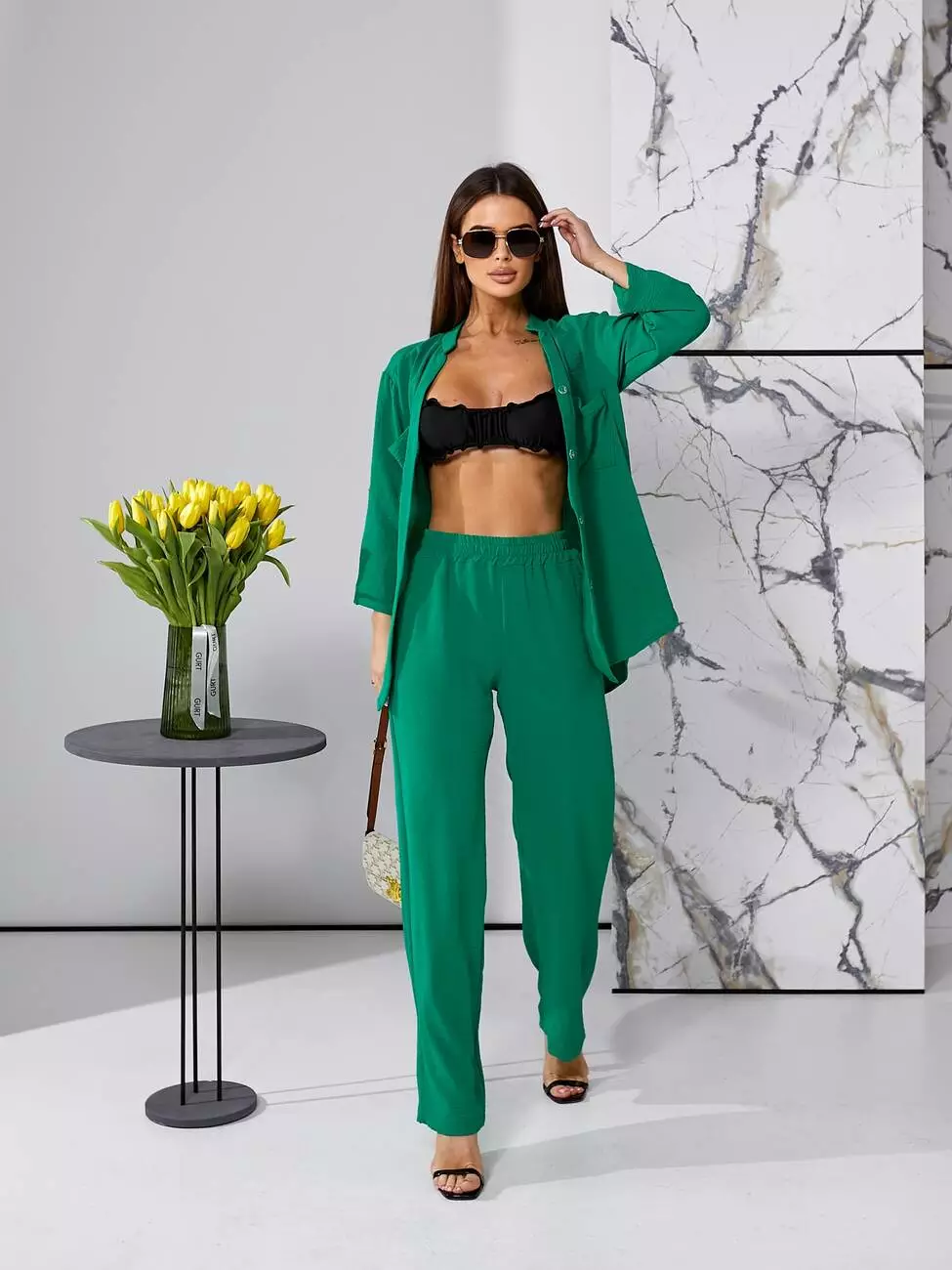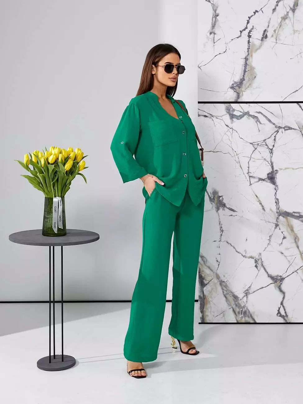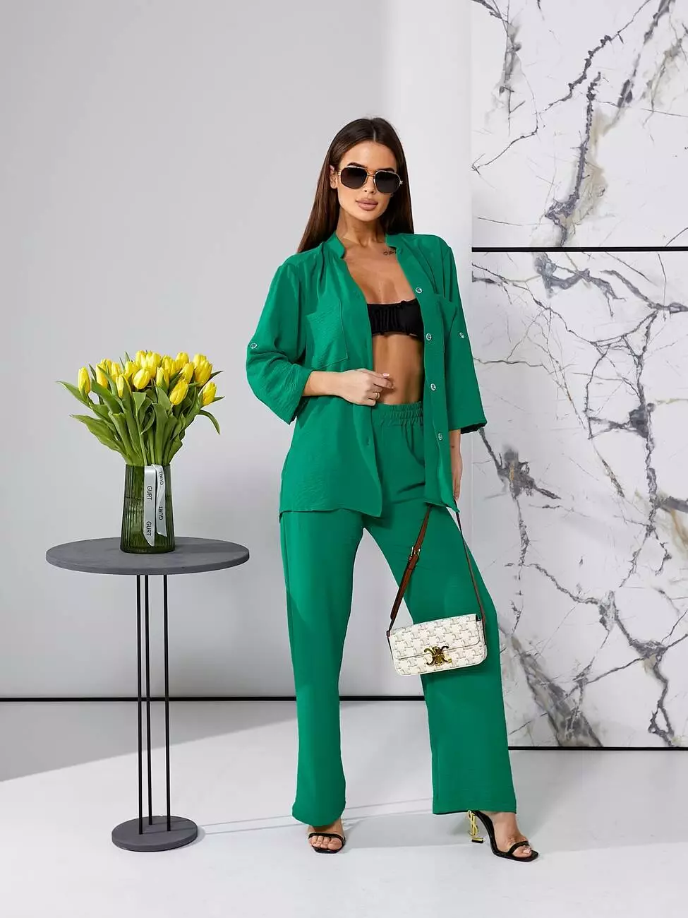 Брючний літній костюм зеленого кольору