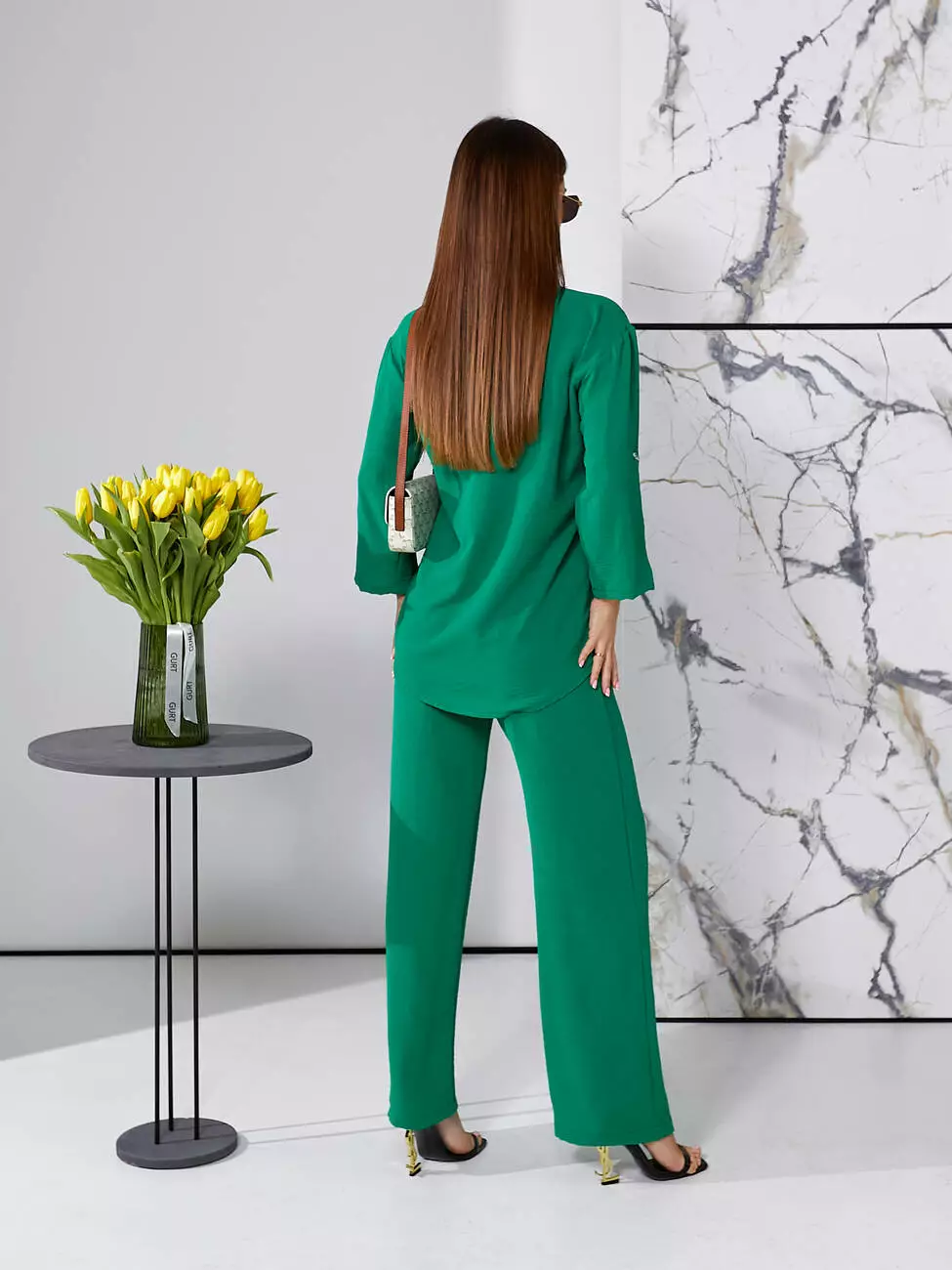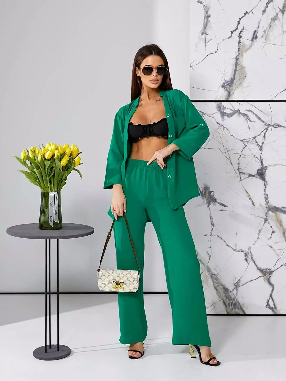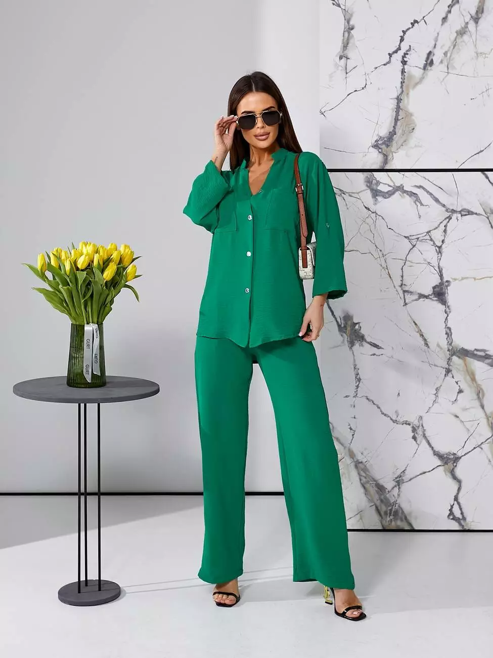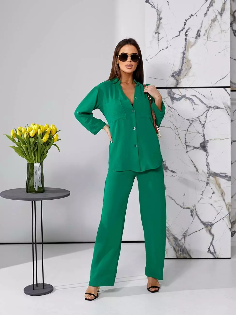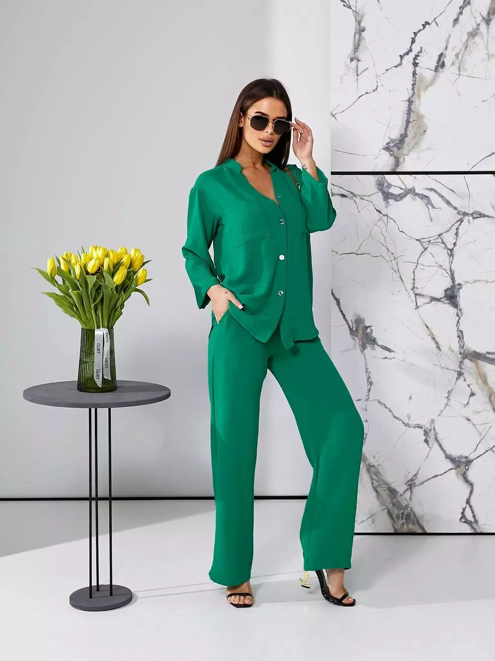 Брючний літній костюм зеленого кольору