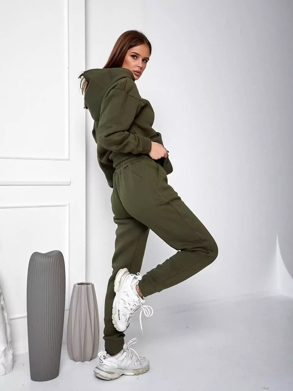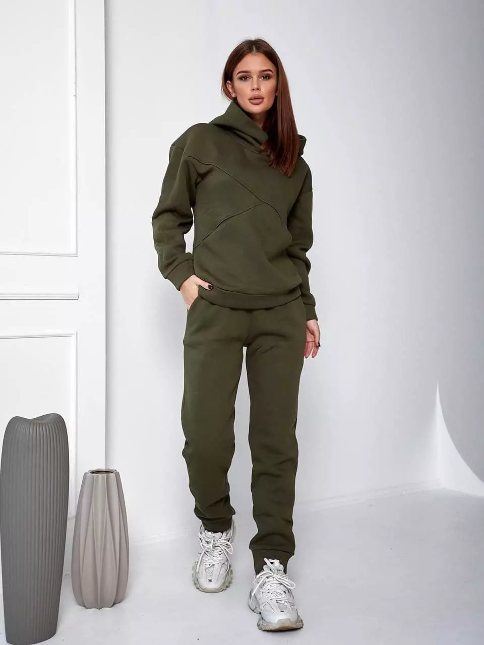 Теплий спортивний костюм кольору хакі