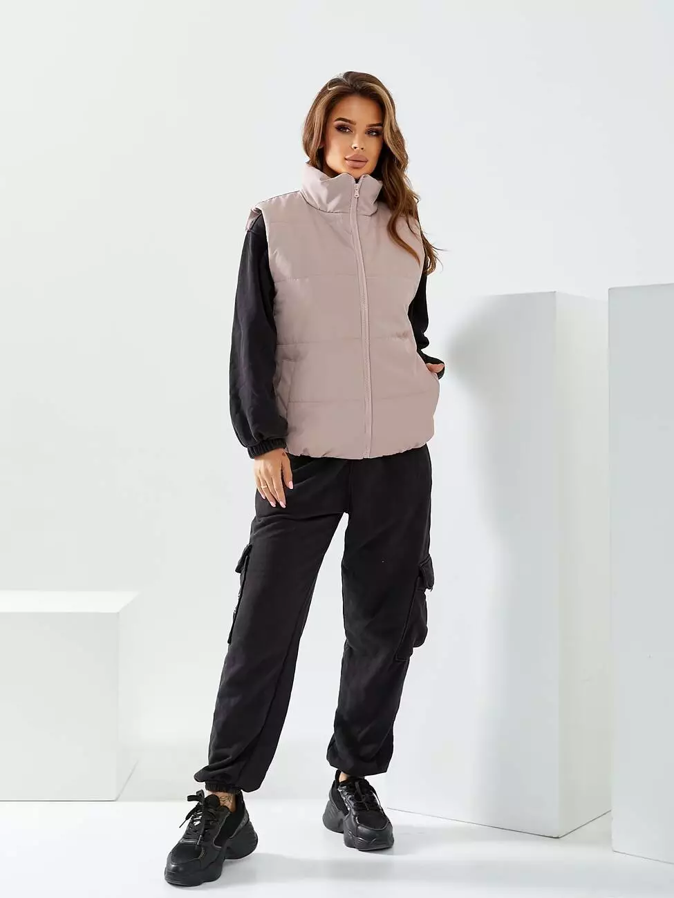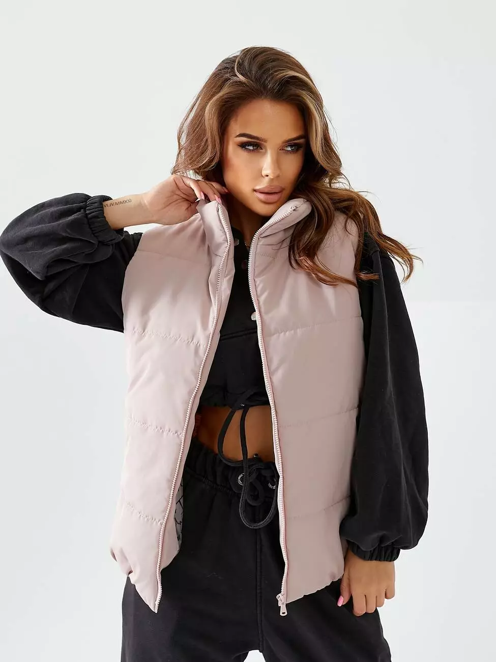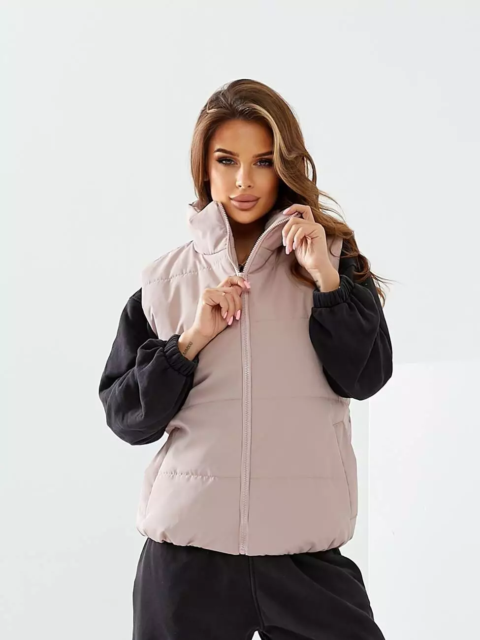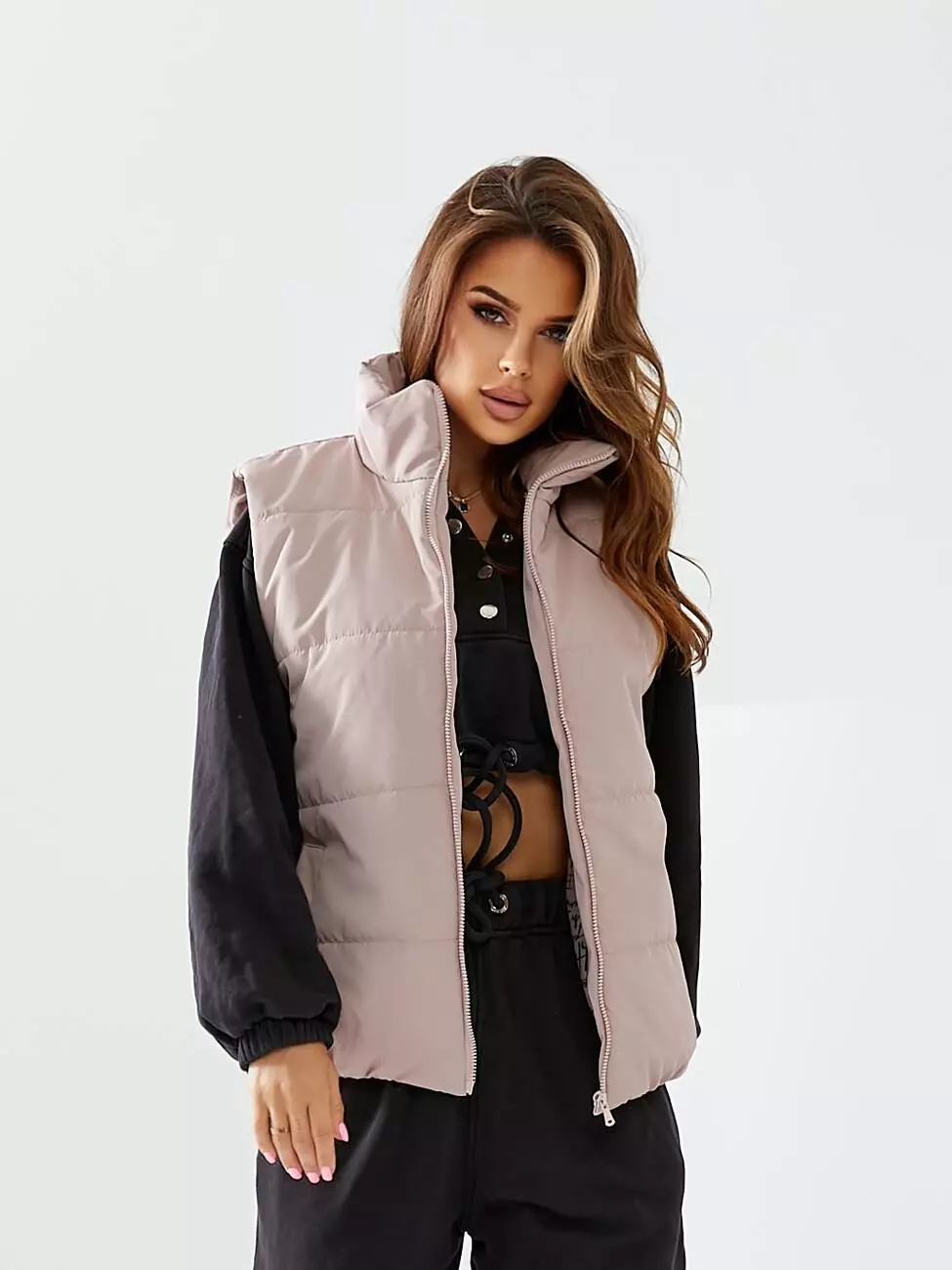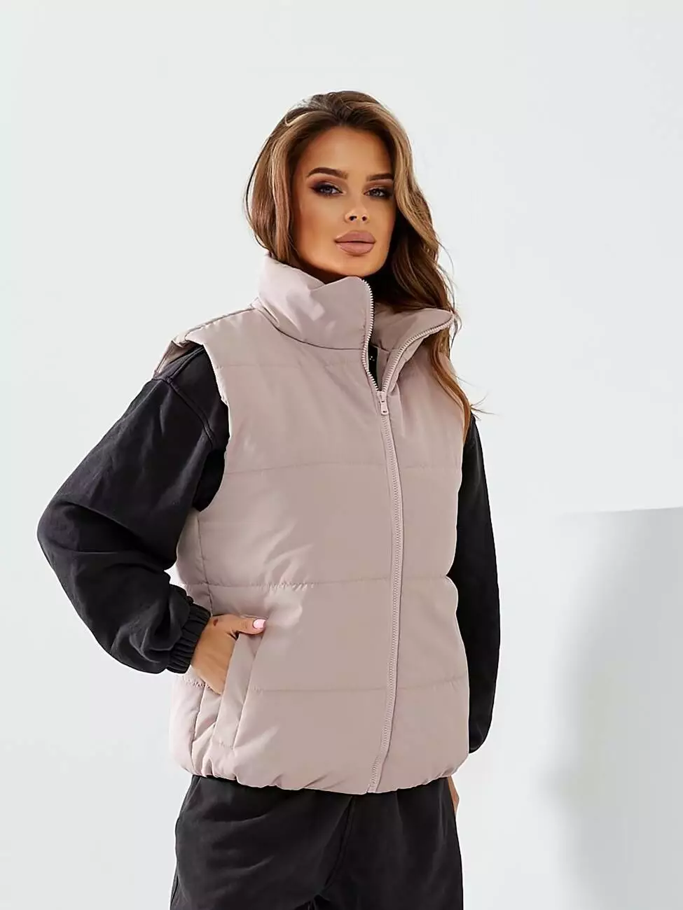 Жилетка коротка на блискавці кольору пудра