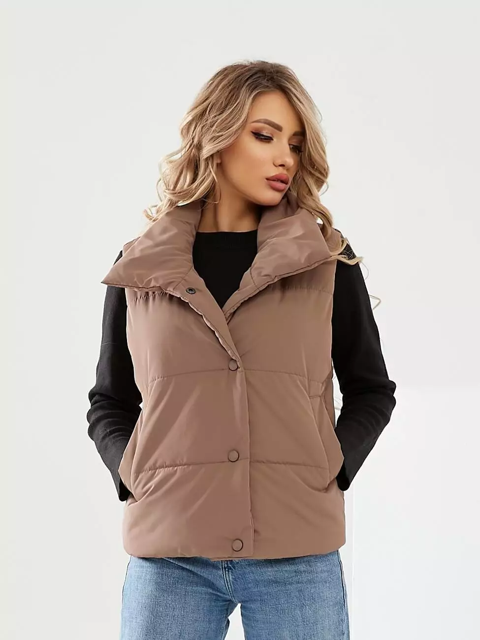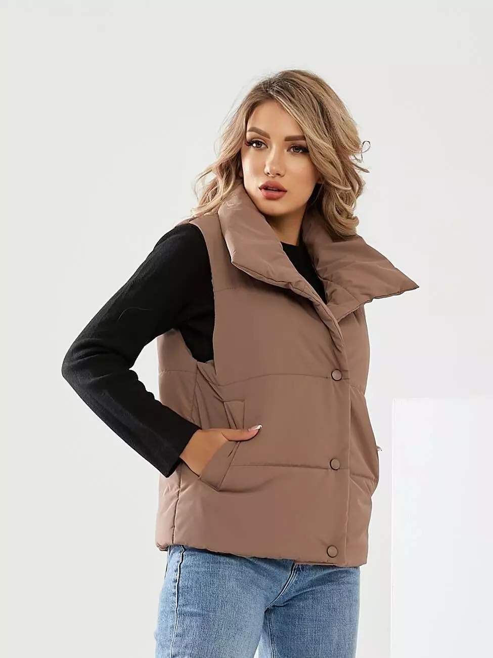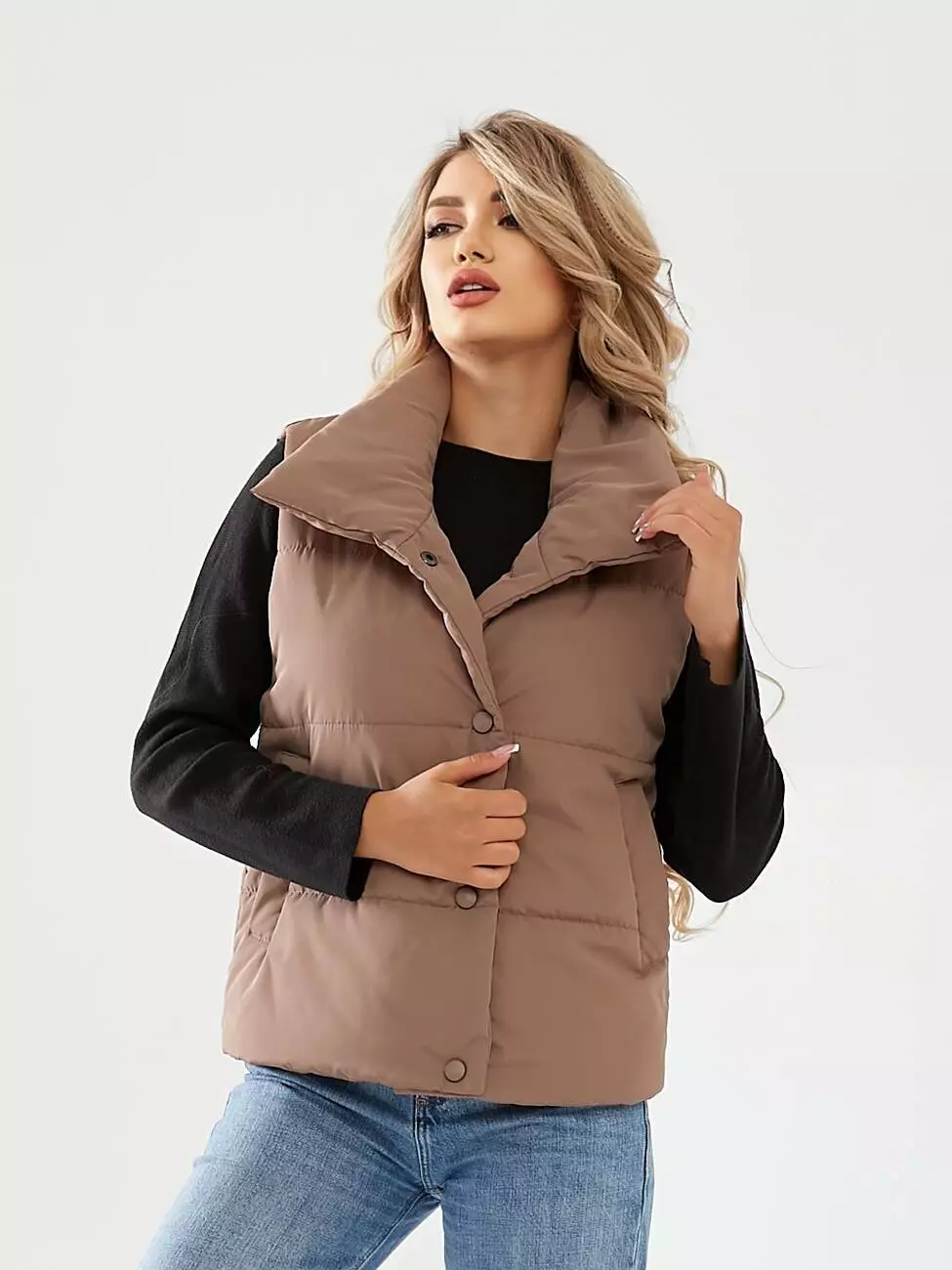 Жилетка коротка на кнопках кольору мокко