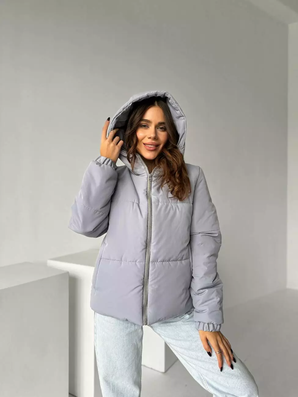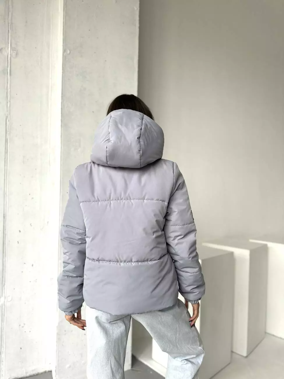 Куртка зимова с капюшоном сірого кольору