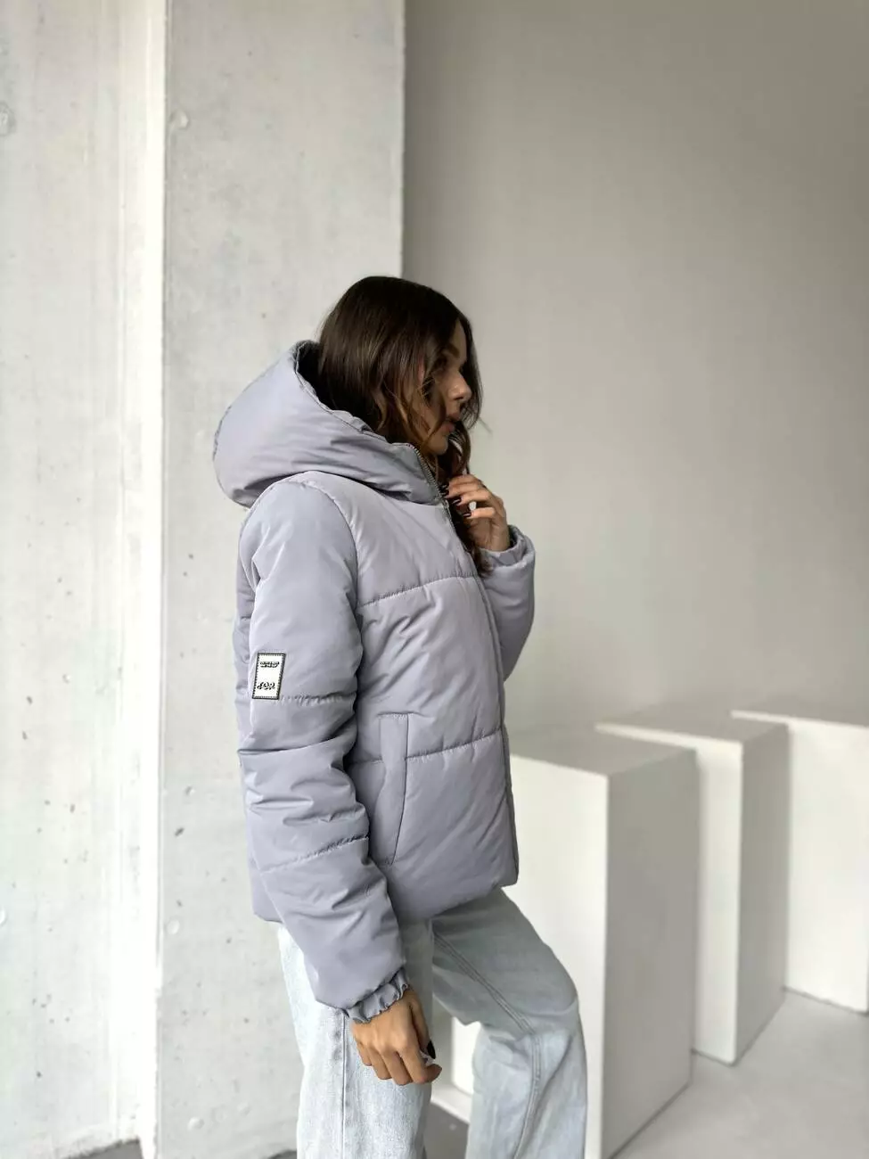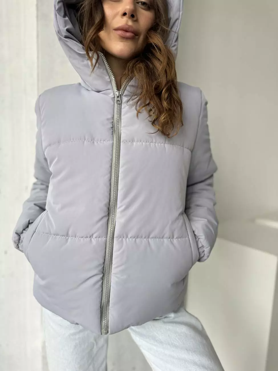 Застібка блискавка переходить в стійку капюшона