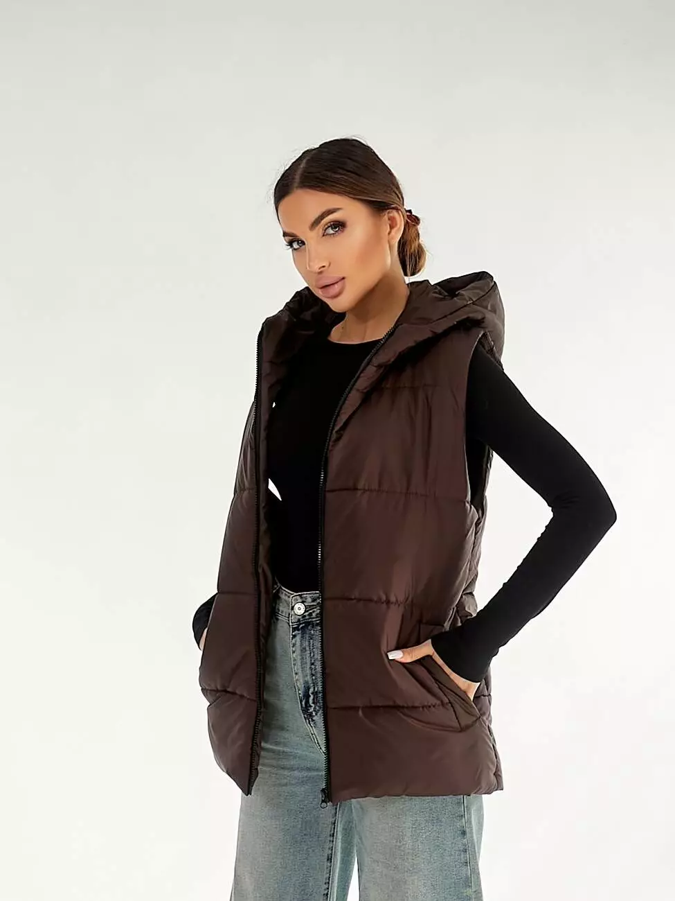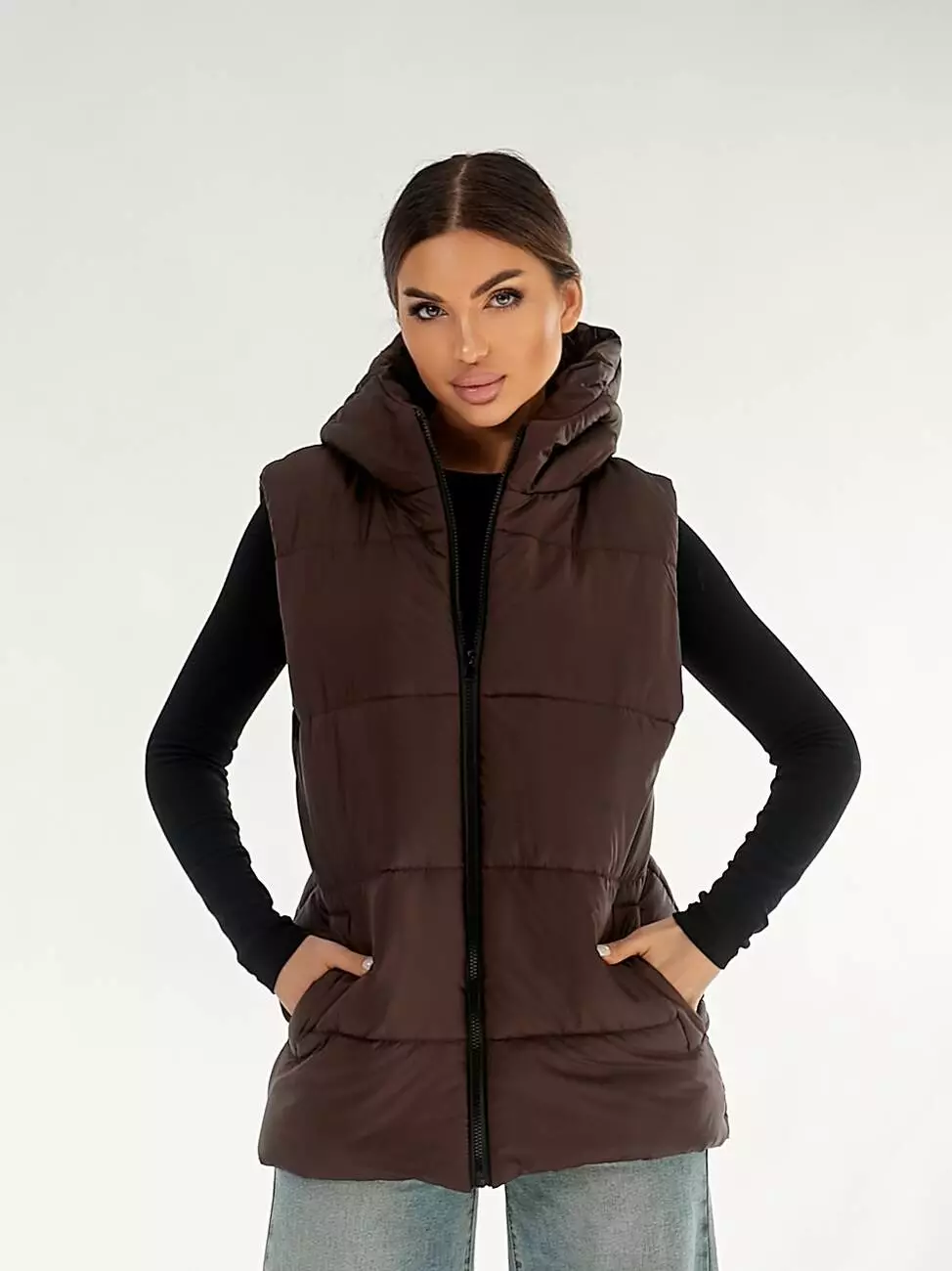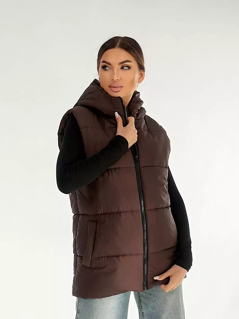 Жилетка з капюшоном у шоколадному кольорі