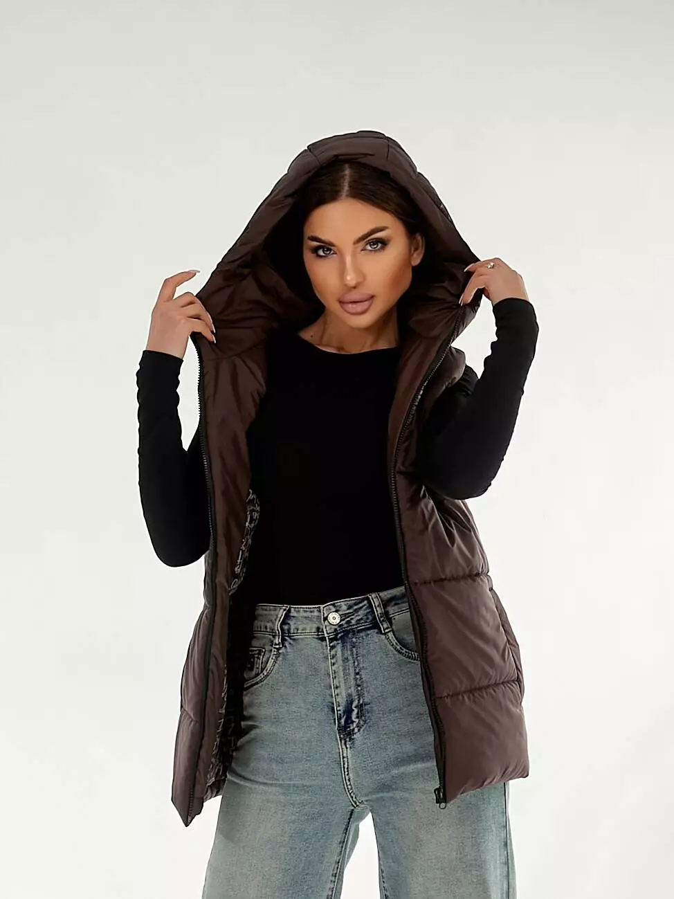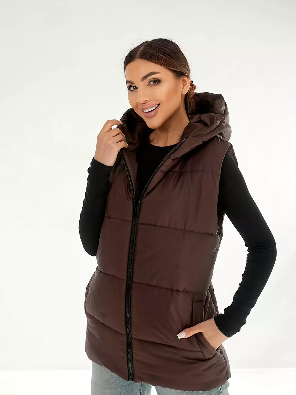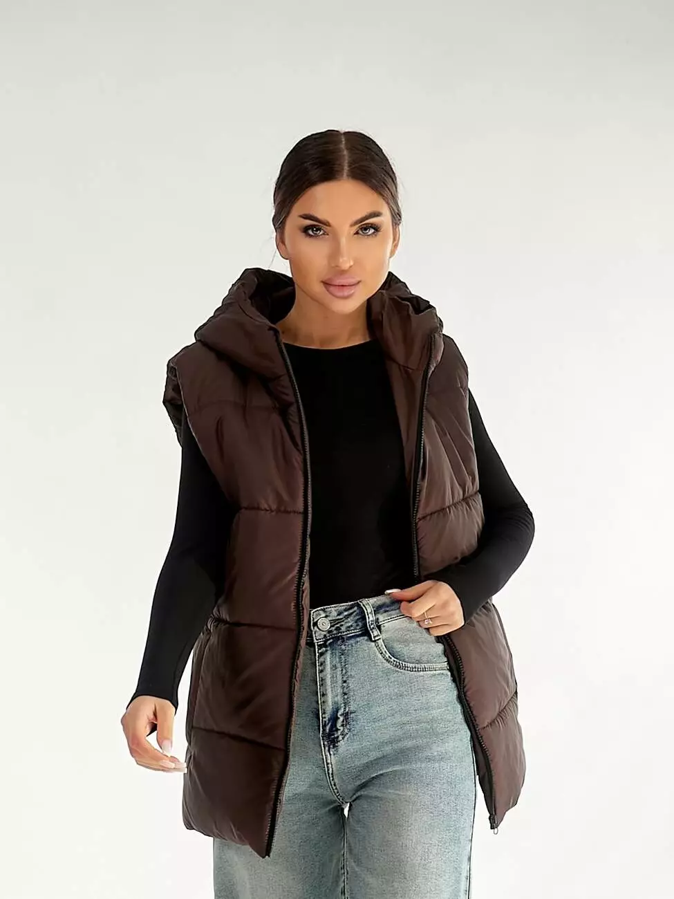 Жилетка з капюшоном у шоколадному кольорі
