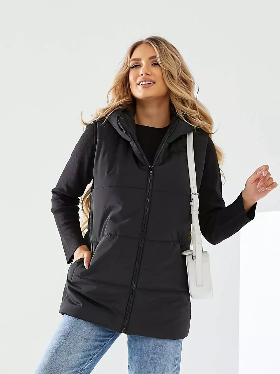 Жилетка з капюшоном чорного кольору